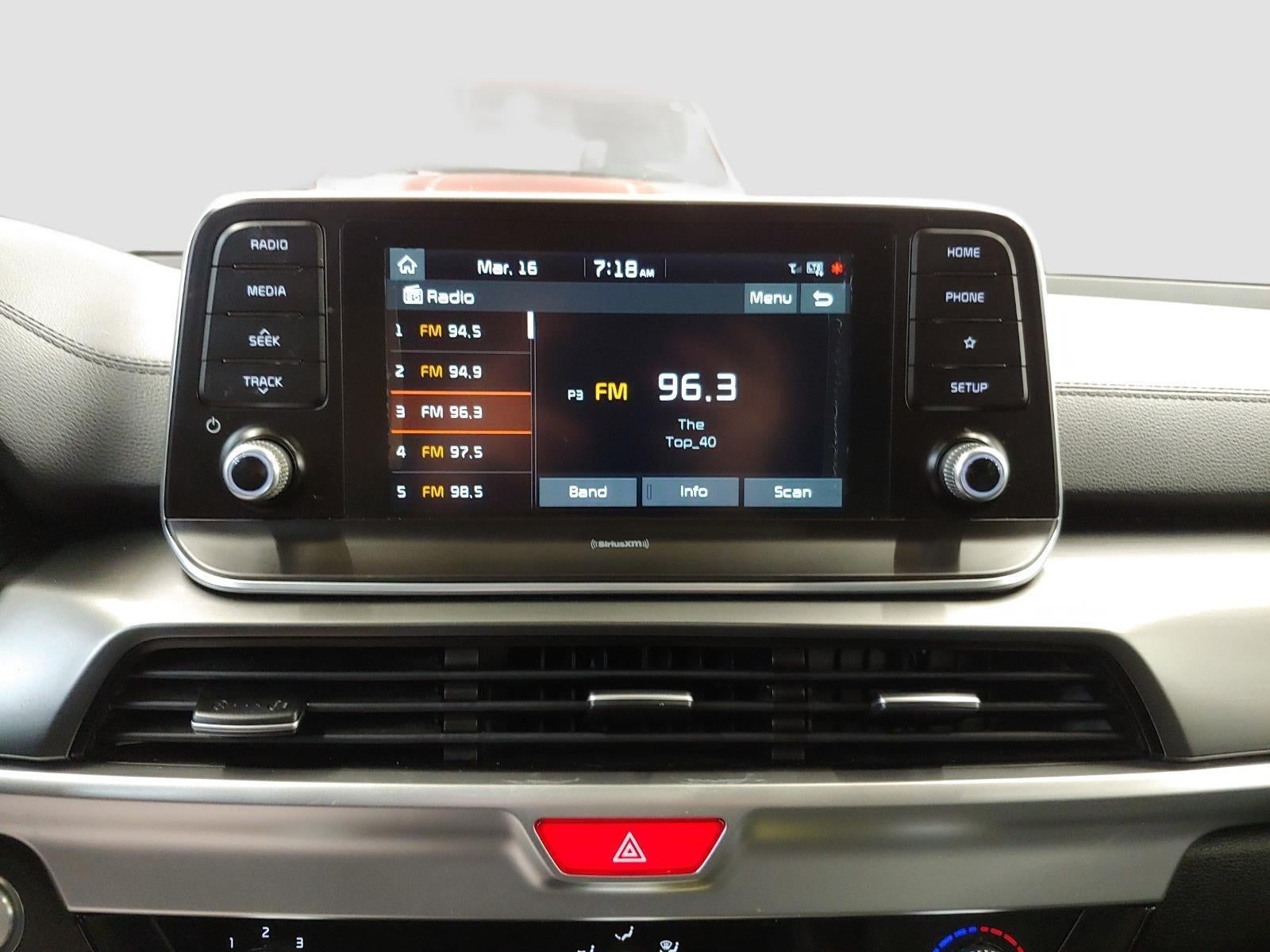- Radio: AM/FM/MP3/SiriusXM Audio System -inc: UVO link infotainment system, w/smartphone integration for remote commands and remote vehicle status, 6-speaker, support for Android Auto and Apple CarPlay, 8" touch-screen color display, a total of 5 USB charge ports in all rows and Bluetooth® wireless connectivity w/voice recognition (a Bluetooth® enabled cell phone is required to use Bluetooth® wireless technology), Note: Remote's climate feature is not available on LX and S trim levels due to manual HVAC system