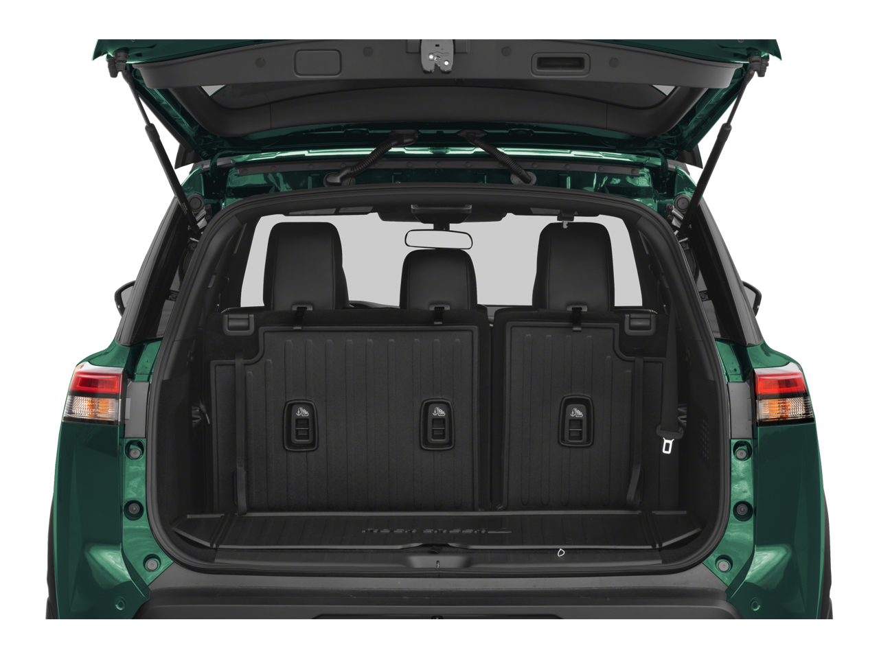 • Fixed 60-40 Bench Cloth/Leatherette 3rd Row Seat Front, Manual Recline, Manual Fold Into Floor, 3 Manual and Adjustable Head Restraints