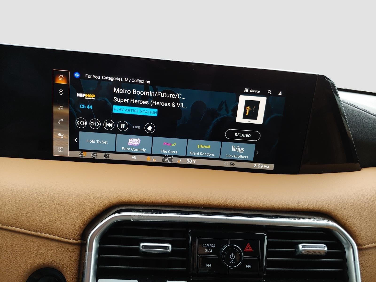 - Radio: NissanConnect w/SiriusXM 360L -inc: 12 speaker Klipsch audio system, 12.3" center touch-screen display, wireless Apple CarPlay and Android Auto, Google Assistant Maps and Playstore data, Alexa built-in, Nissan door to door connected navigation w/traffic information, Bluetooth® hands-free phone system, Bluetooth® streaming audio and messaging, voice recognition for audio features, hands-free text messaging assistant, Siri Eyes Free, USB port for compatible devices, advanced audio features, in-car 4G Wi-Fi hotspot and hybrid radio